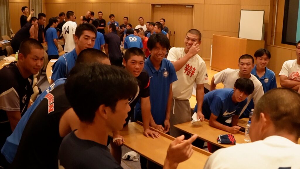 野球部、サッカー部の選手たちがお互いにディスカッションをし、