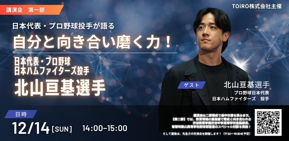 | 登壇者 | 北山 亘基選手(日本代表・プロ野球 北海道日本ハムファイターズ 投手) 高橋 正忠氏(渋谷教育学園渋谷中学高等学校 進路部部長) 中谷 仁氏 (智辯和歌山高等学校 野球部監督) |
